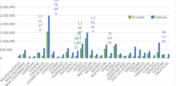 En las instituciones privadas, observamos que la Ciudad de México sigue siendo el primer lugar, posteriormente Puebla, Estado de México y en cuarto lugar Chiapas.