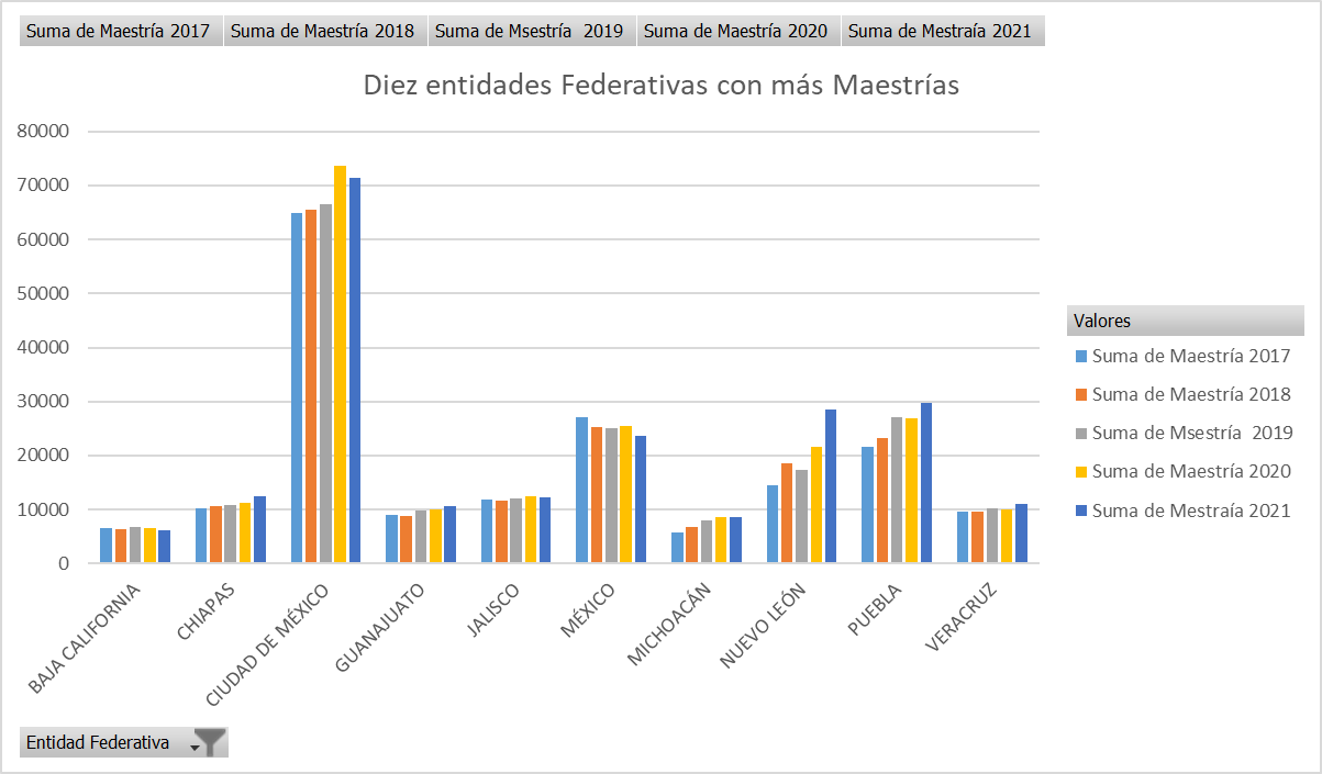 Las 10 mejores entidades federativas con aumento en la matrícula a nivel Maestría